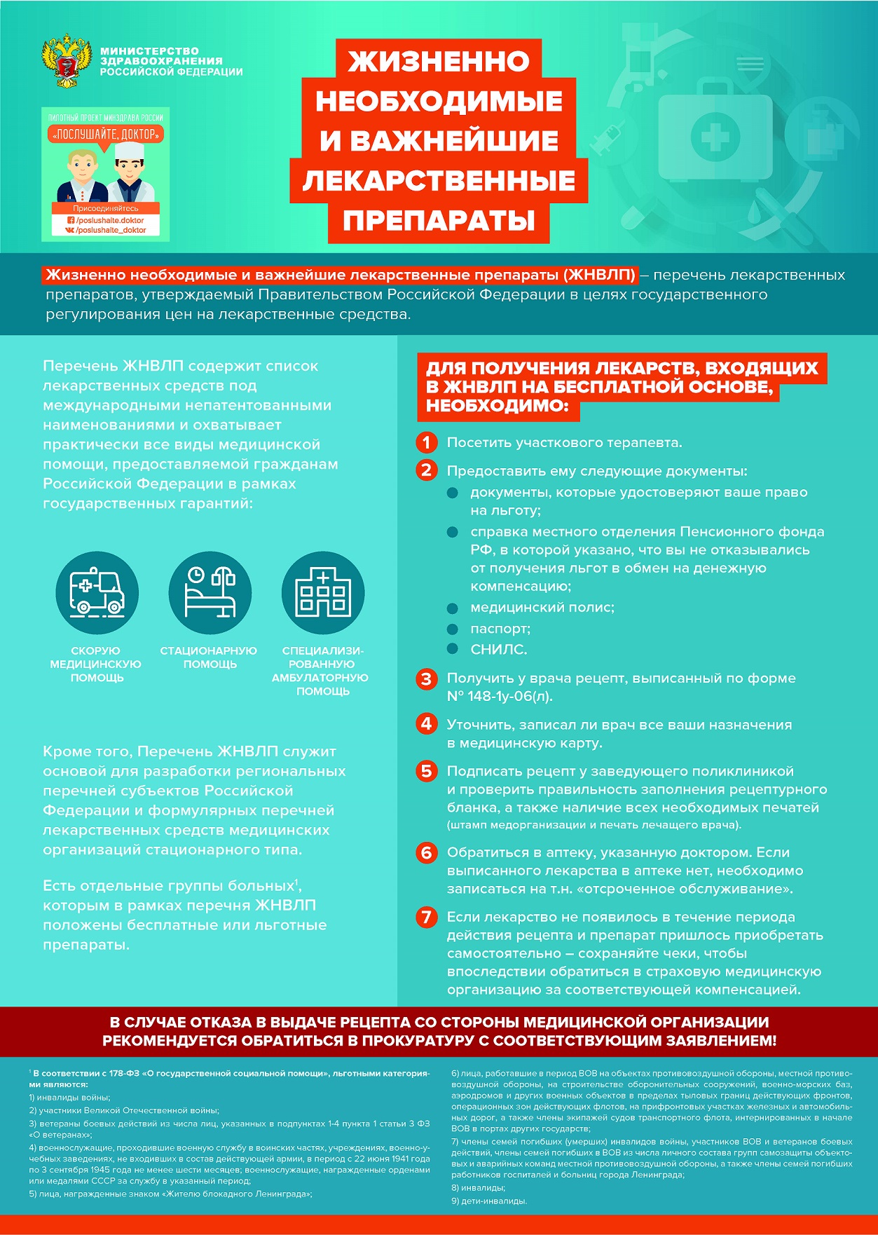 Чтобы получить рецепт на препараты, входящие в список ЖНВЛП, на бесплатной основе, необходимо: